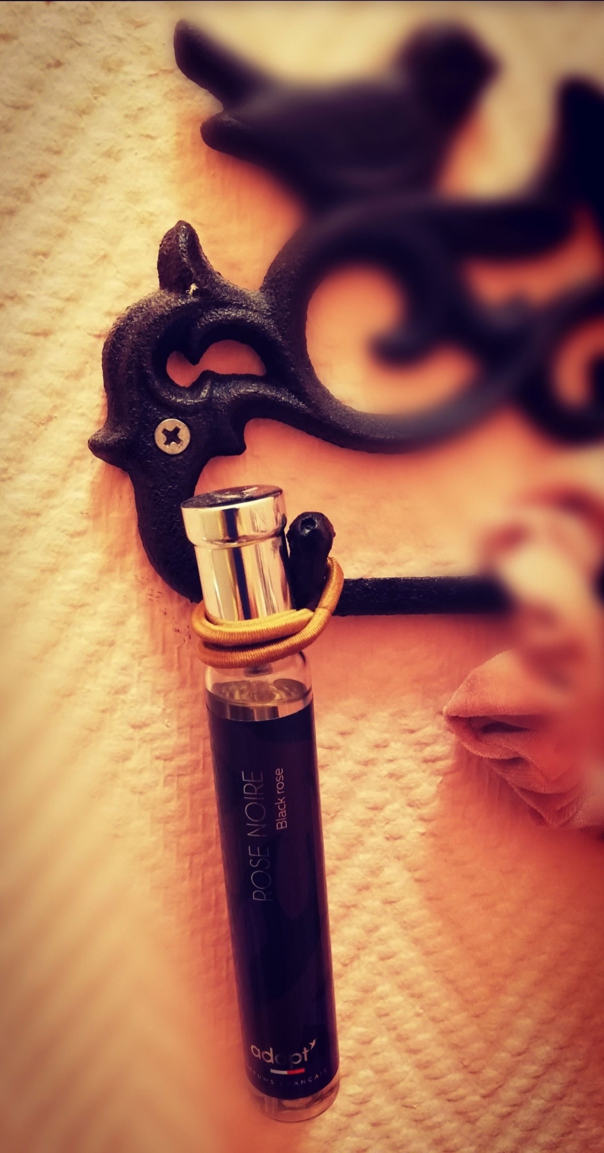 Rose Noire by Adopt is a sensual, sweet rose. This is not a flower blooming in a summer garden, but a syrupy, dense, dark and seductive rose. Beautiful and enveloping, with a distinctly boudoir-like mood. It lingers for several hours with moderate yet noticeable projection. A truly beautiful fragrance.
