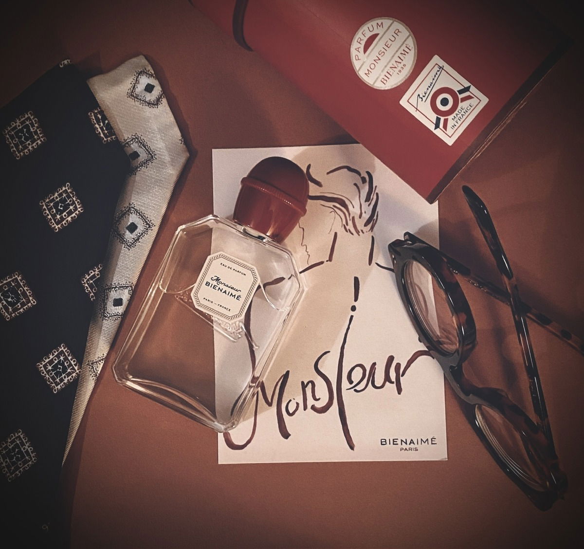 After the brand "Bienaimé" fell into a kind of hibernation in 1960, Cécilia Mergui revived it in 2021 and has since breathed new life into some old creations. "Monsieur" is the first new fragrance from the brand.