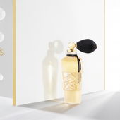 The bottle is cylindrical with grooves through it. In the middle there is a section where these grooves are interrupted and the glass is clear again. But here you can see beautiful bird patterns that have been worked into the glass. The bottle is rounded at the top, on the neck hangs a black cord or "scarf" with golden ends on which the name of the fragrance is written. There's also a nice golden pump ball you can unscrew. If you do not do this, you can put a round lid on top of the spray head. All in all a very beautiful and very feminine looking bottle. Okayy, so... wow. That's right, wow! The fragrance, which starts off a bit violently at first and might not please you immediately (because of the strong liquorice fragrance in the top note), develops soon after spraying on more and more to a very great, really feminine, very sexy-effective, delicious fragrance.