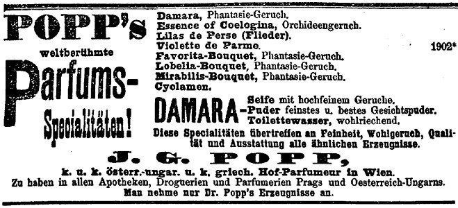 A perfume by Dr. J. G. Popp for women and men, released in 1893. The production was apparently discontinued.