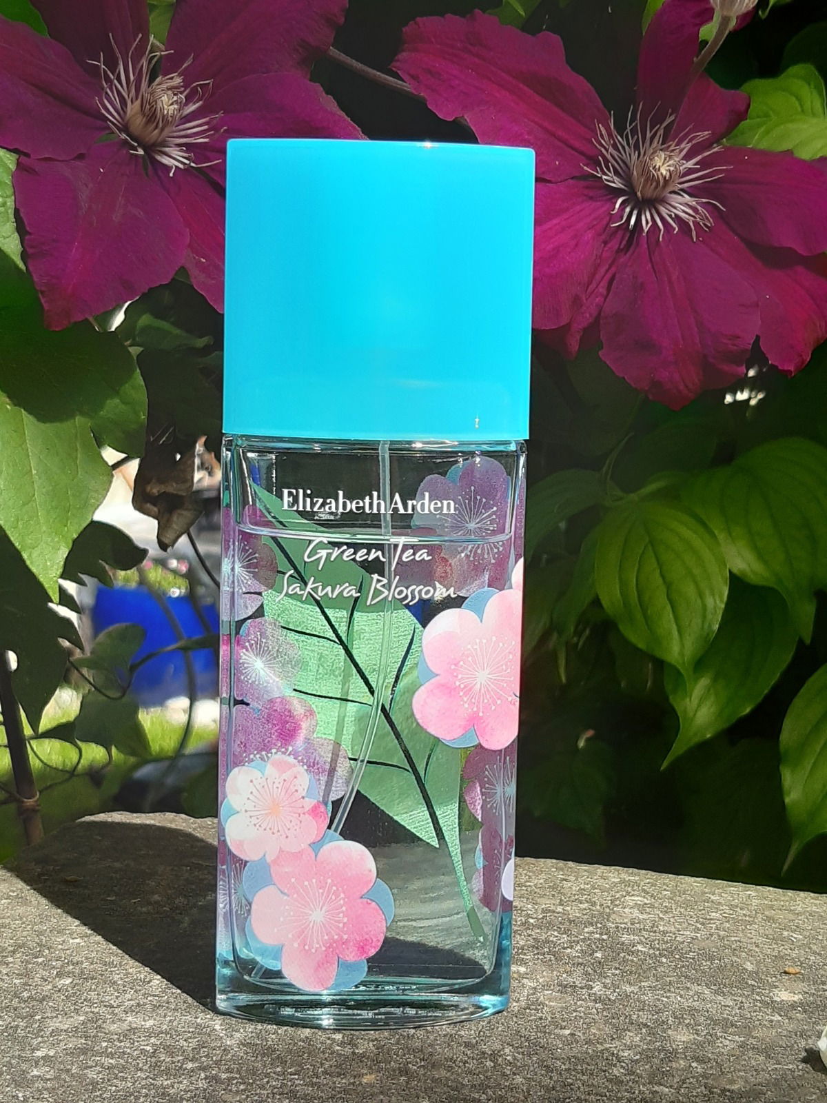 I also really like the Green Tea fragrances by Elizabeth Arden. Every new release I discover gets tested. Thanks to the regular offers at the drugstore with the R, I also own some of the bottles. Sakura Blossom is enticing just because of the beautiful pink and purple flowers on the bottle and the name. One imagines a rather delicate, fresh scent in an Asian style. And that's how I perceive it when wearing it.