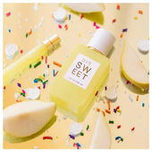 It's juicy pear and powdery marshmallow. A gourmand, fruity, fluffy, sweet deliciousness. Not cloying or harsh, just a happy scent.