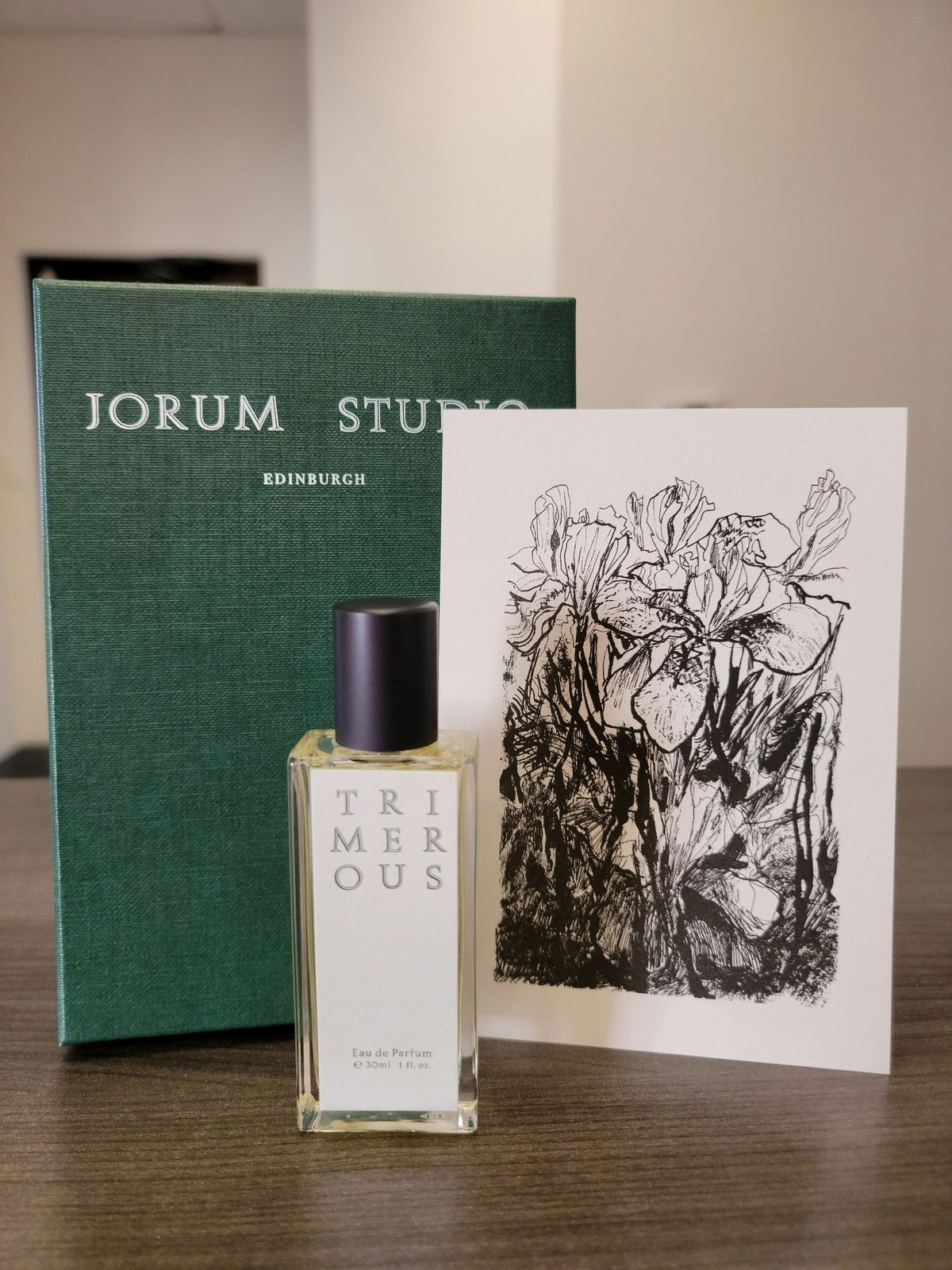 Trimerous, meaning three, is a nod to the three petals of an iris flower. This composition starts off with buttery orris, you can imagine yourself prancing through a field of clouds when wearing this. You get a peppery, rootiness from the angelica, and herbal accents from thyme.