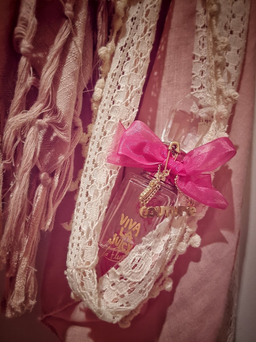Today, in a side-by-side comparison, I find that VIVA LA JUICY LA FLEUR is literally a flanker made from VIVA LA JUICY with a triple dose of the floral elements: gardenia, jasmine, and honeysuckle all do sound plausible to me, since this is a white floral parade. I do not detect the lily listed among the notes.