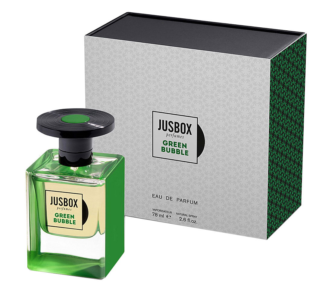 The Jusbox flacons stand out a little from the often dull all sorts of things, a clear glass square with a very solid base and colour accents that let the entire flacon shine, crowned by a black knob on which a stylized vinyl disc thrones. All this packed in a voluminous and beautifully printed cardboard box. Very attractive design that runs from A to Zet - that's what I like! In this perfume, a strong green has been chosen, which is also very much to his face, the fragrance is called dashing "Green Bubble". Unfortunately I don't want to think of any pictures to justify this name - but I would be similarly misleading with Allen keys, bacon dumplings, Tempo 30 zones or daisies.