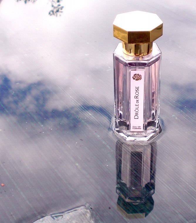 LAP's Drôle de Rose (Funny Rose) starts as a powdery, lipstick, boudoir rose. It's all cosmetics, fru-fru, pink & girlie at the top. The heart reveals more complexity with the iris & violet, but then something happens. Drôle de Rose takes on a slightly sweet musky character. Eventually, it becomes a dark, red, almost spicy, rose, but one still appropriate for the bedroom. It's got a bit of leather in it - only enough to make you pause, not enough to label this a skank scent. This is the seductress's rose, but it's ever so slight ... only a whisper.