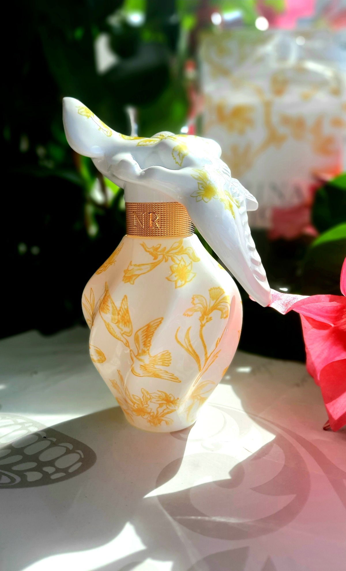 I have not paid attention to this fragrance somehow and today stumbled upon it at the discounted shelf. The first thing that caught my eye was a patterned bottle. It is such an eye catcher in real life, so amazingly beautiful and fragile looking. But the scent itself is a nice one as well. It reminds me very much of a mix of Gucci Bloom Profumi (yellow bottle) and Bloom Nettare (the one with ginger in it). Since i really like those two perfumes i also liked LADT. So i guess instead of buying those 2 Guccis i will buy Nina Ricci instead, since it is just amazing scent in an amazing bottle. And while i still deeply love the original LADT and own many bottles of that, i can really appreciate this new flanker, which has nothing to do with the original, yet i can enjoy them both.