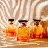 Tart fruitiness followed by woody oud with sweet vanilla