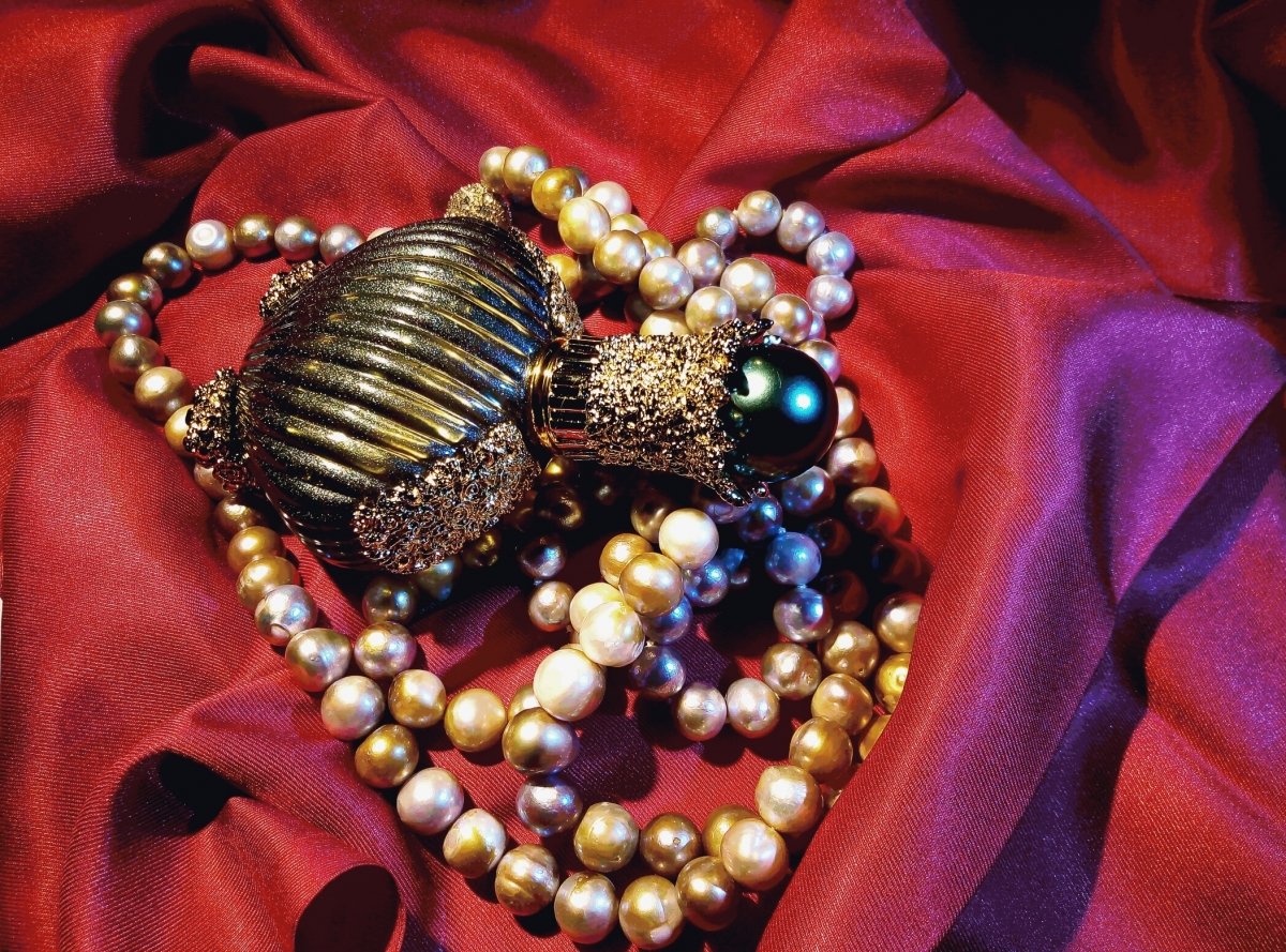 ...dark pearl from Bahrain, surprisingly fresh, floral, woody, subtly oriental, sensual, gentle and warm, very feminine....