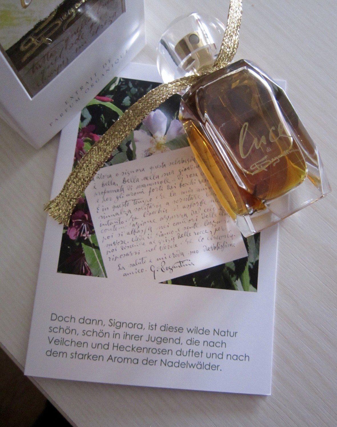 My closest experiences in the perfume realm have been with the scents of Annette Neuffer; not least because of the waxy-resinous undertone, a comparison is obvious. However, I see the Neuffer creations as having a broader and, to put it pointedly, “more perfumey” composition, thus having a nose-length advantage overall. While Ms. Segantini, with her “Luce,” explicitly wanted to capture just a mood. In this respect, it would be exciting to see if further fragrances follow that might be of a different kind.