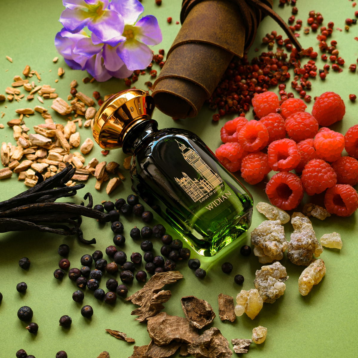 - The fragrance starts off really intense; the juniper berry is clearly noticeable and creates a truly full, almost cool clarity with the pepper, which comes along with the spiciness of the pepper. Very dense, intense, and different from the "London (Extrait de Parfum) | Widian / AJ Arabia", which has the raspberry much more in the foreground and lacks this spicy-cool aspect. The raspberry is also present here, but for me, it only comes into play later in the progression; however, it is less sweet, rather earthy-green due to the patchouli with a good woody foundation. Yes, the fragrance smells much greener than the "London (Extrait de Parfum) | Widian / AJ Arabia", without losing its character entirely.