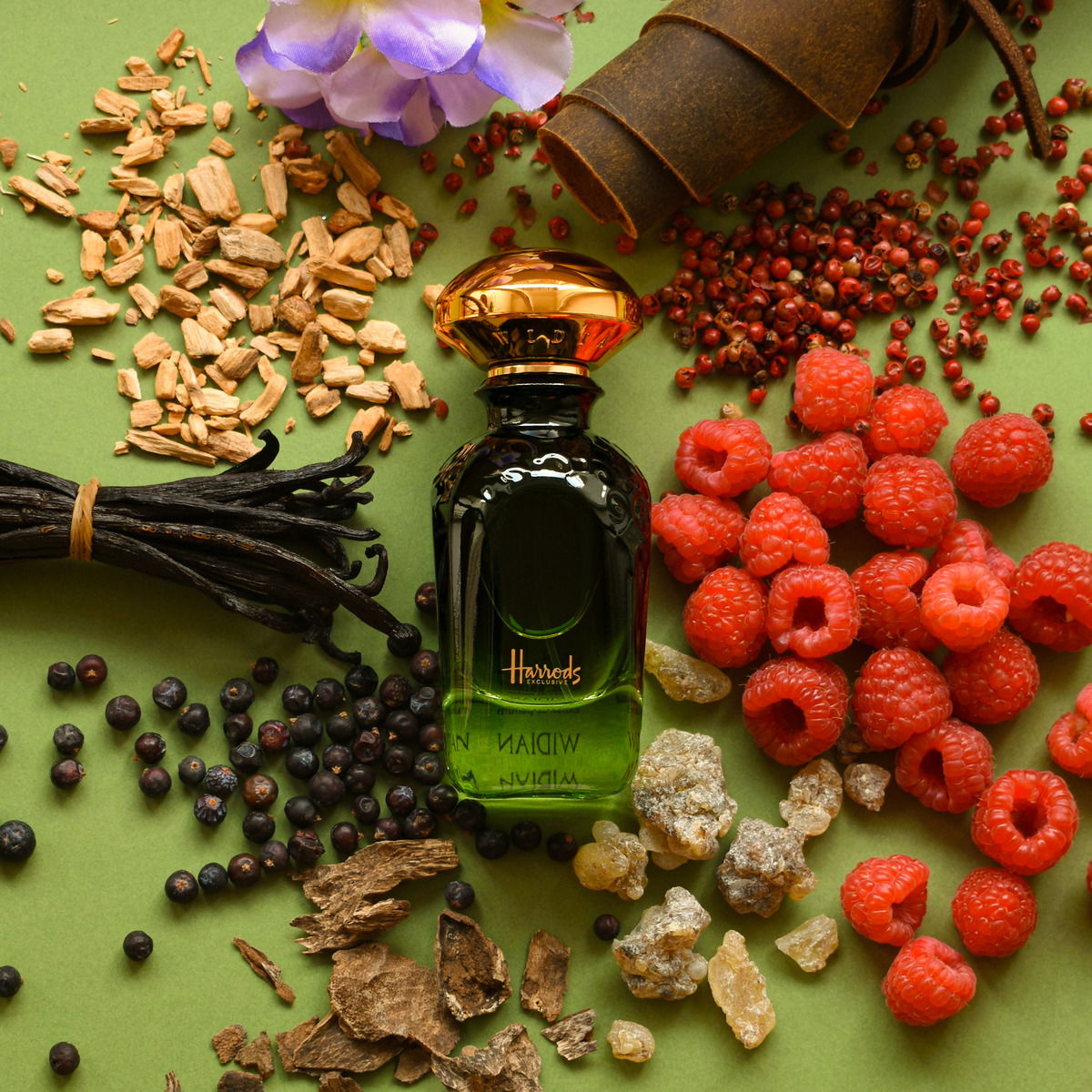 - As it develops further, the subtle oud appears along with the incense and leather; the green-earthy aspect remains in the fragrance, and the raspberry takes a bit of a back seat. Towards the end, a bit of sweetness balances the fragrance, and it lingers on this base... and lasts, and lasts...