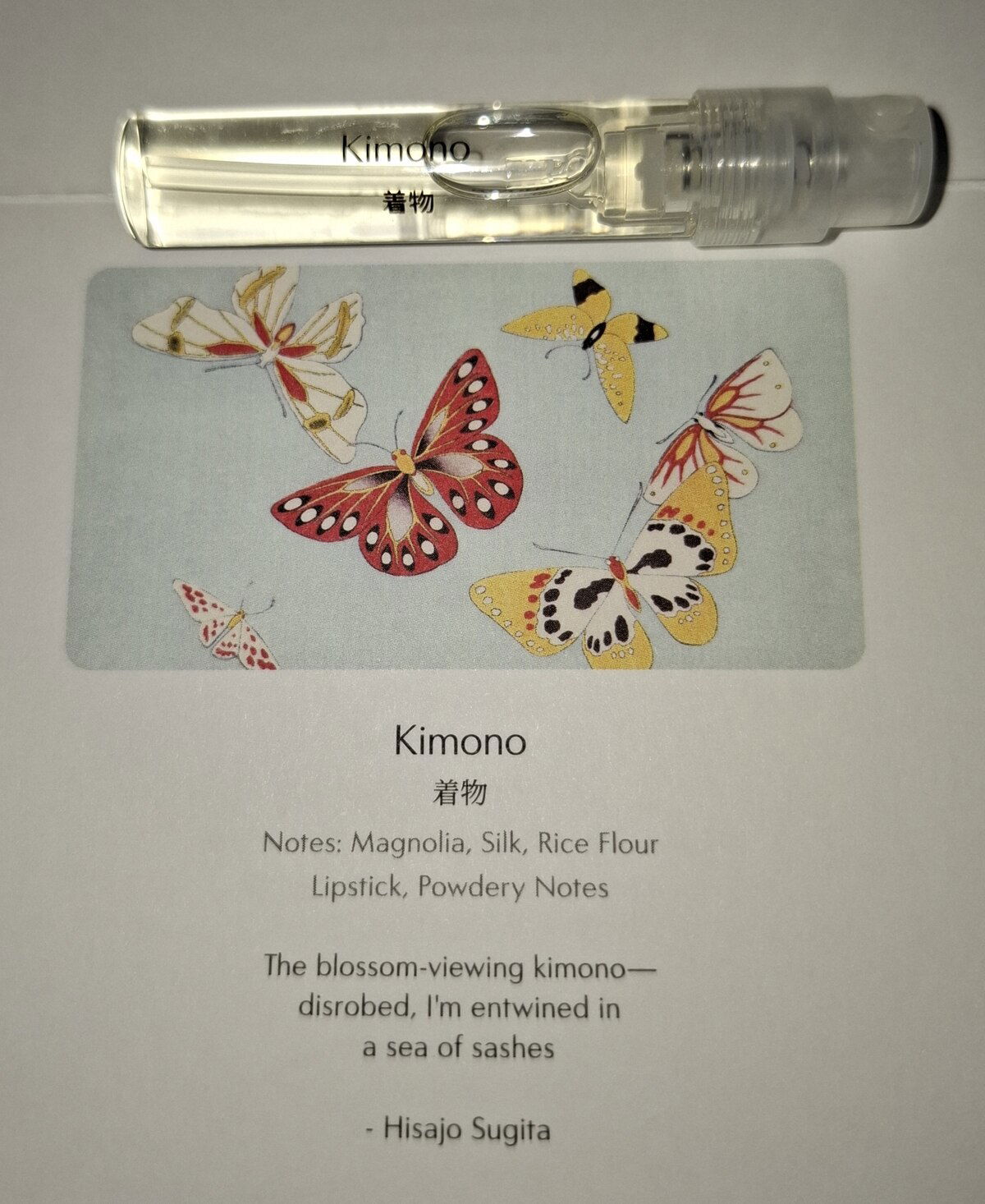 This perfume fits nicely into routine. An extension of a state of being. It may be too assured of me to say that Kimono is perfectly balanced. It is just enough coy and just enough confidence.