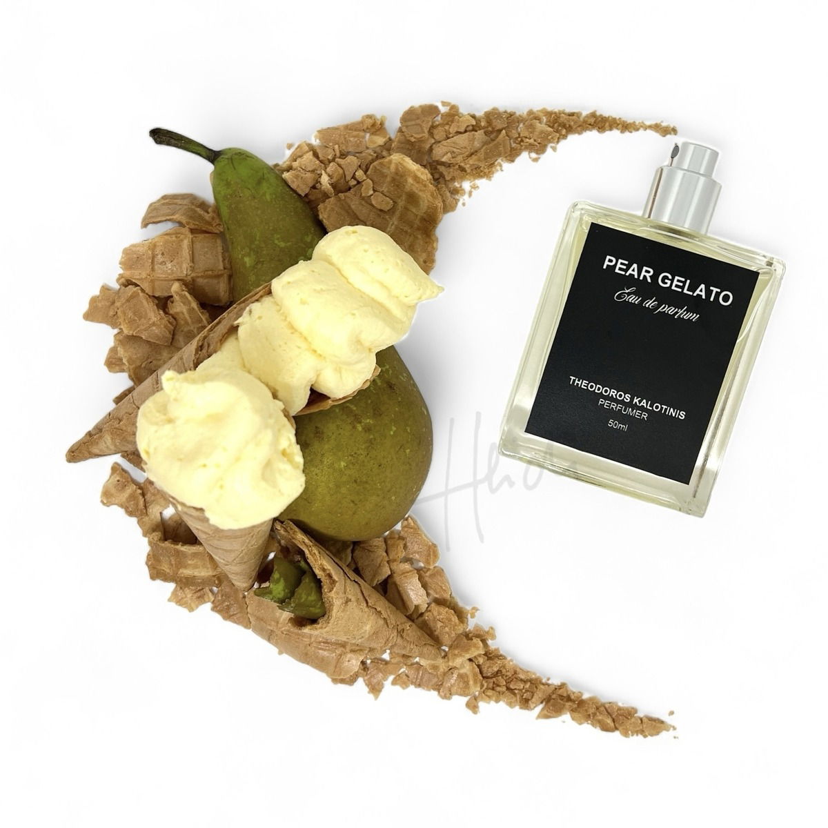 It might seem linear on paper, but it does evolve, even if I mostly get the same notes throughout. Eventually the pear and vanilla get a bit softer and more fluffy. The vanilla gets more sugary. As they slip out of focus, I smell something like a scoop of pear sorbet on -or next to- a waffle cone. The pear isn't lactonic, but the waffle cone is and feels more photorealistic. It's like you applied the synthetic pear fragrance you smelled outside BaBW, and walked into the gelato shop.