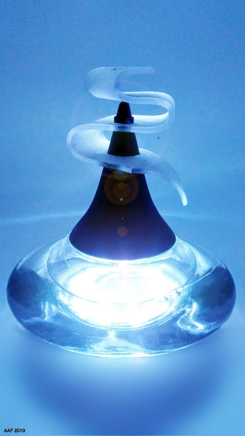In wunderbarem Lichtblau schwebt der Flakon dahin....