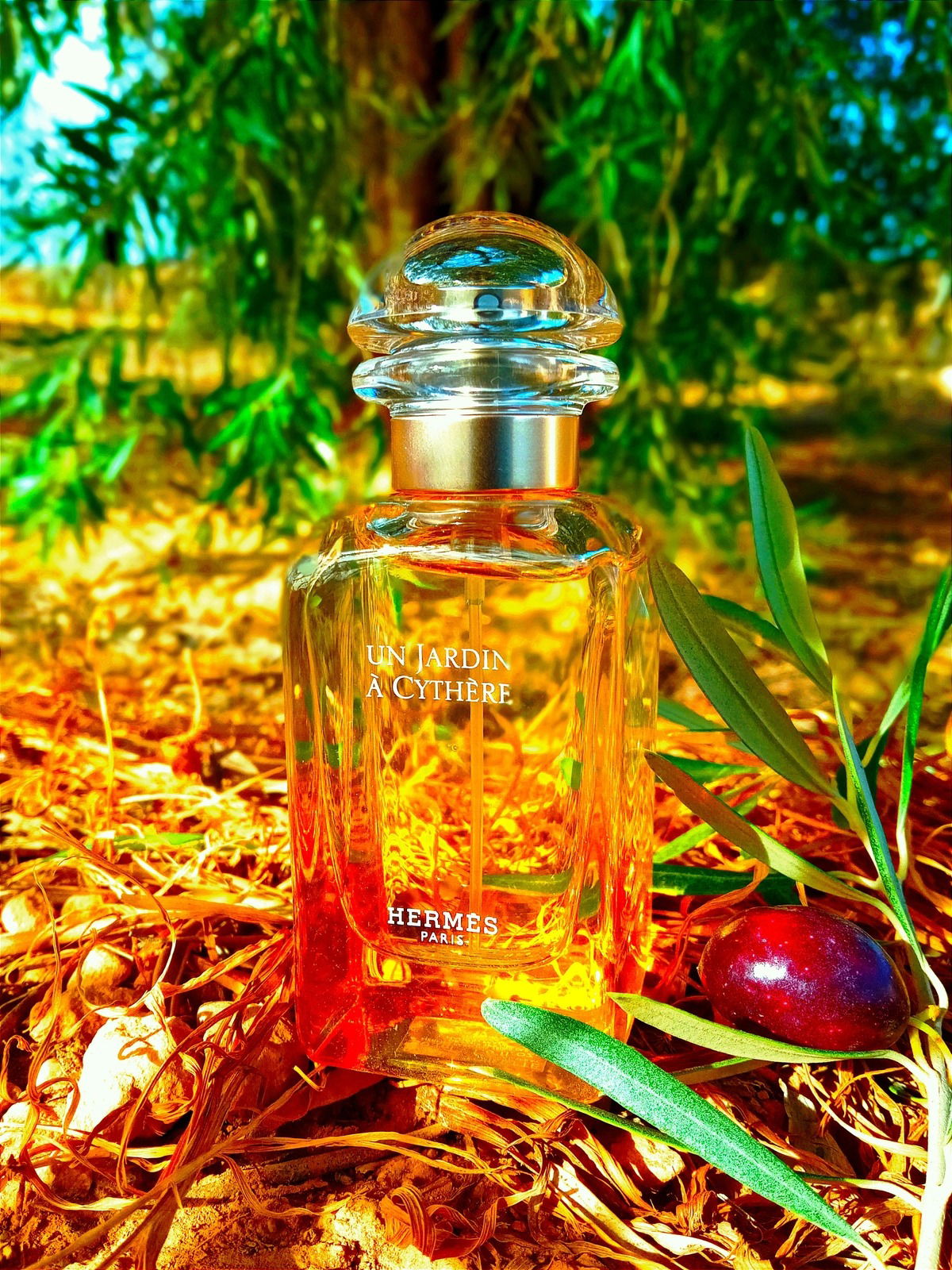 This bottle is very photogenic, I really like it for that reason, it always comes out with a special shine. I remember that there were many dry olive leaves on the ground. Thank you very much honey 🧡