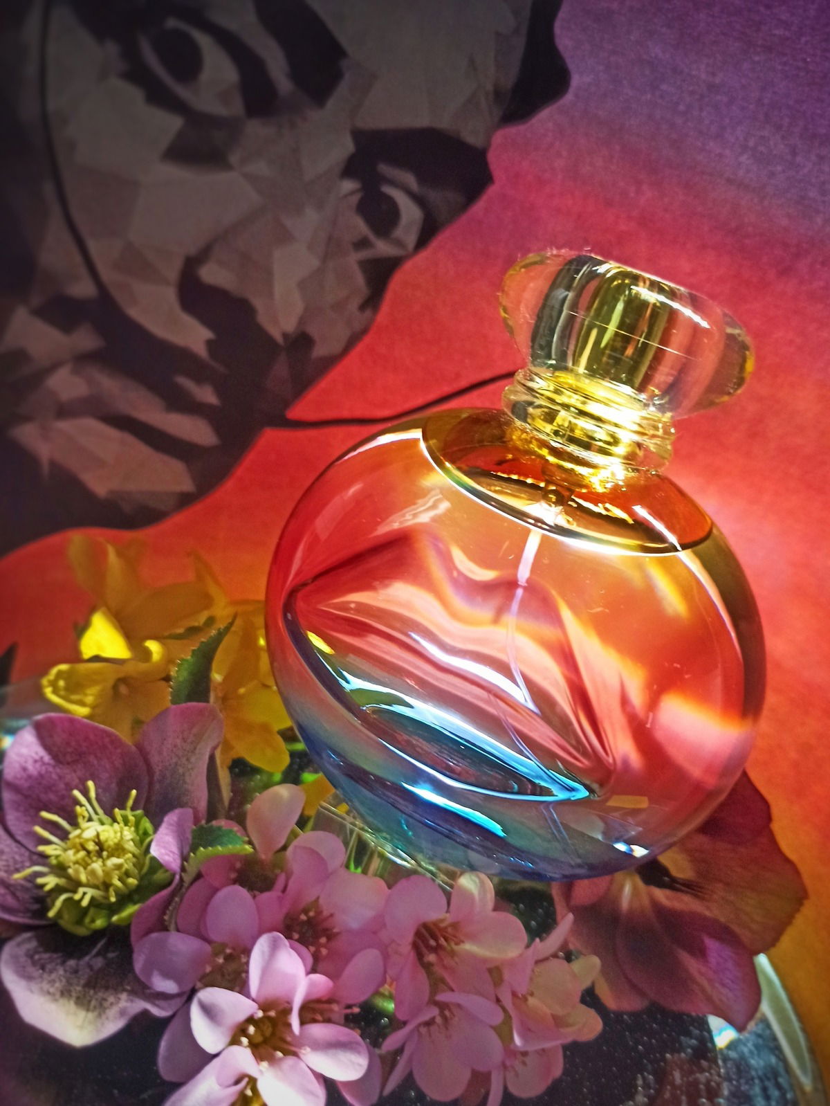 Sagenhaftes Farbspiel mit Flakon und Hintergrund, toll!!!!!!