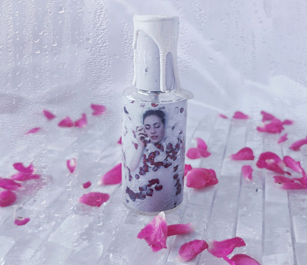 Wunderschön mit den Tropfen und den Blütenblättern 🌸, der Flakondeckel ist ja sehr besonders. 😊