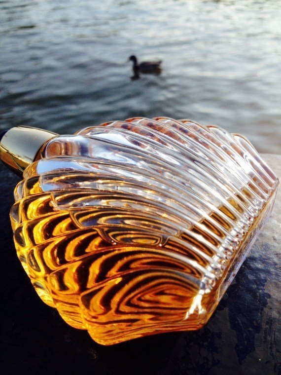 Ein wunderbares Bild. Die Wellen des Flakons, die Wellen des Wassers, die Leuchtkraft des Flakons und die kleine schwarze Ente bilden eine fantastische Komposition.