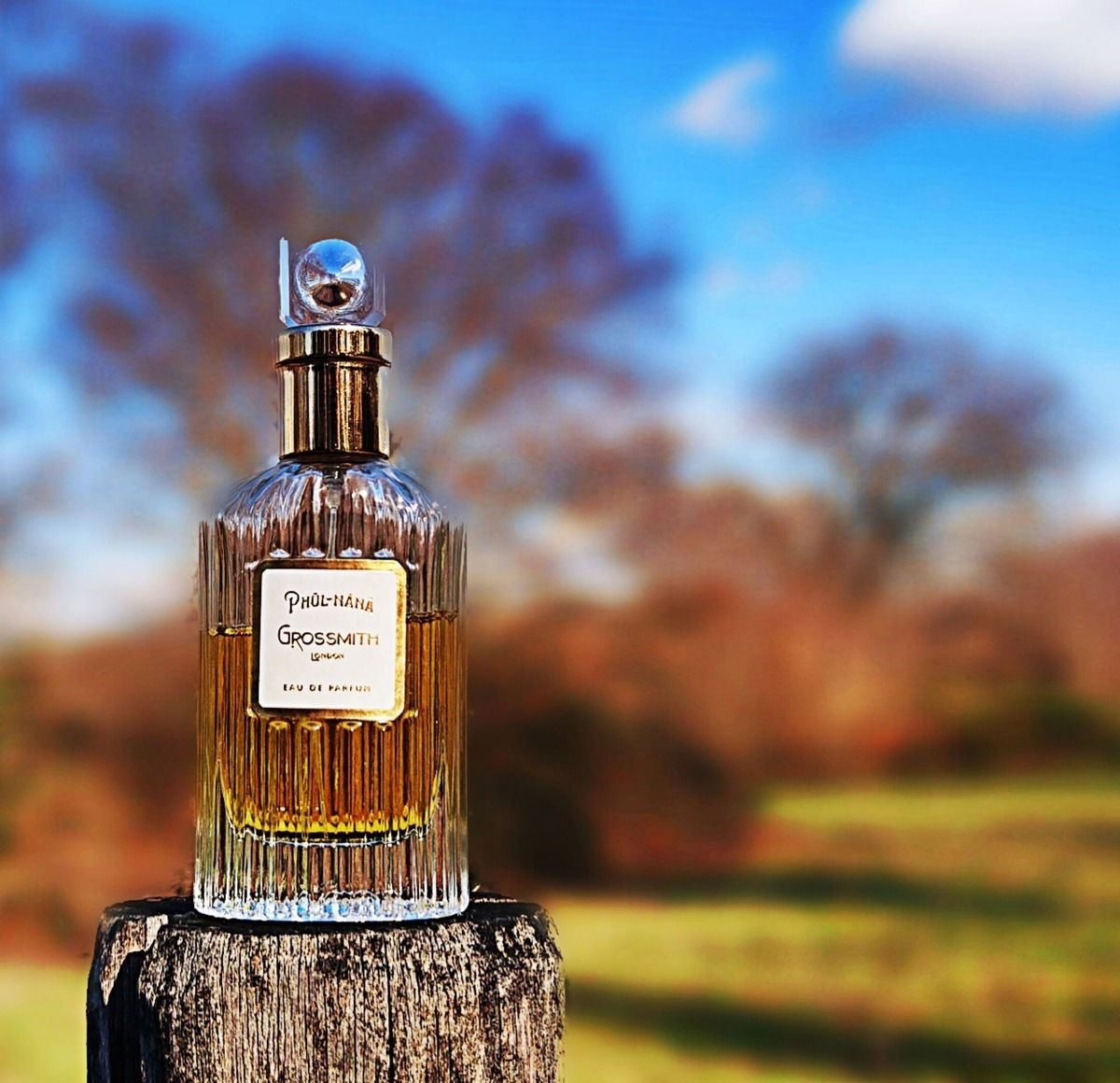 Als ob der Flakon eins mit dem Holz wird.