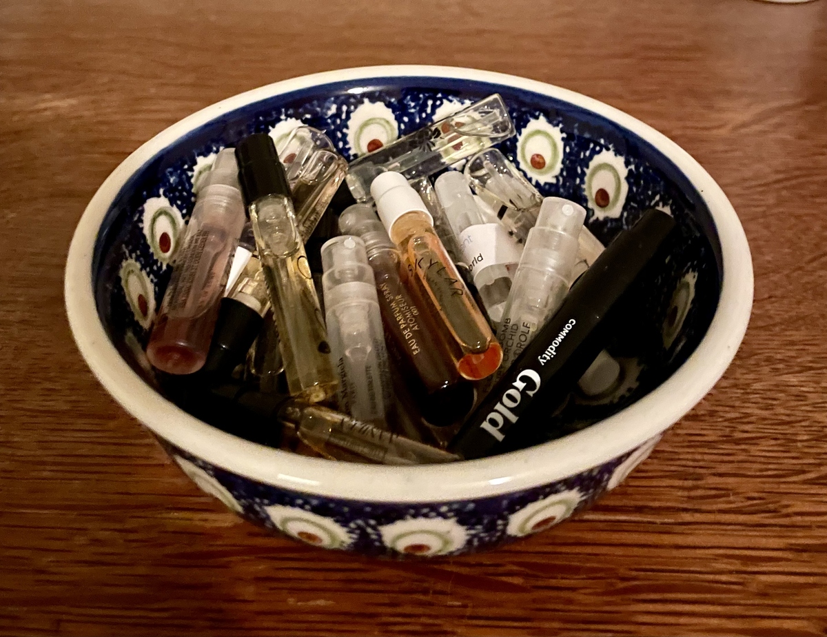 It’s that time of the year to break out the reusable advent calendar. This year I decided to put a spin on last year’s 24 Days of Vanilla and do 24 Days of Samples. My attempts to adhere to a no-buy or low-buy have been largely unsuccessful. After placing one last cyber Monday order, I decided for the rest of December (or least through Christmas) I would wear a sample a day, as an attempt to work my way through all the samples I accumulate (and never seem to use) and add some variety to my fragrance wardrobe. I’ve been stashing away samples throughout the year, to the point that I don’t even know what I have anymore. I’m hoping the novelty of unboxing a little surprise every day will give me just the dopamine hit I need to keep me from buying fragrances this month. I’m documenting my samples here
