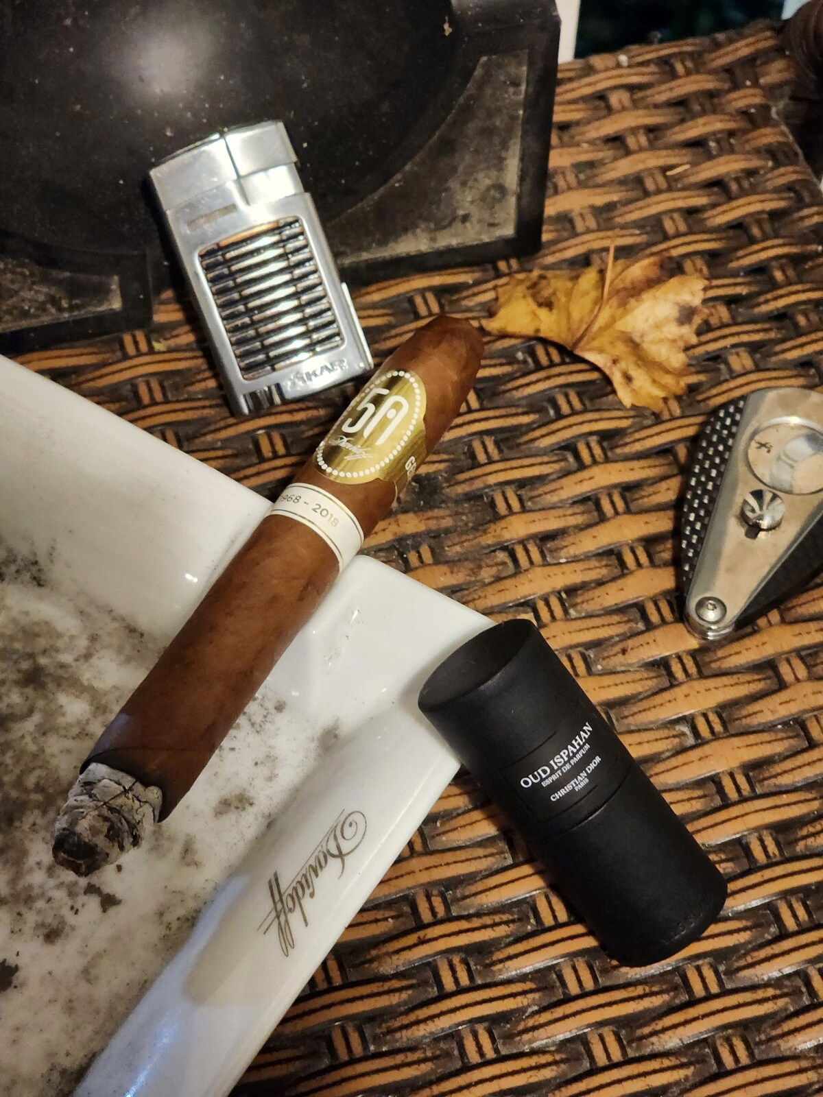 Jasmin et Cigarette. I sprayed it once, and then I did it again because it started to fade and I wanted to spend a bit more time together. Hm. The more I learn about my tastes in perfumery, the less I understand them, lol.