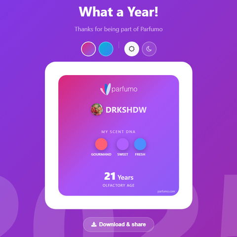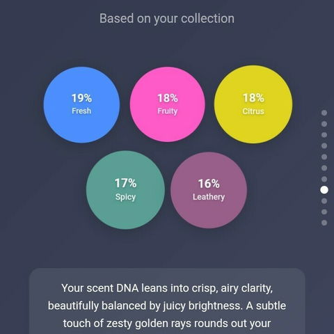 This was my first year using Parfumo (only started about two months ago) and it told me that I have a preference for sweet, gourmand, and fruity perfumes, and that I have the nose of a 4 year-old 😭